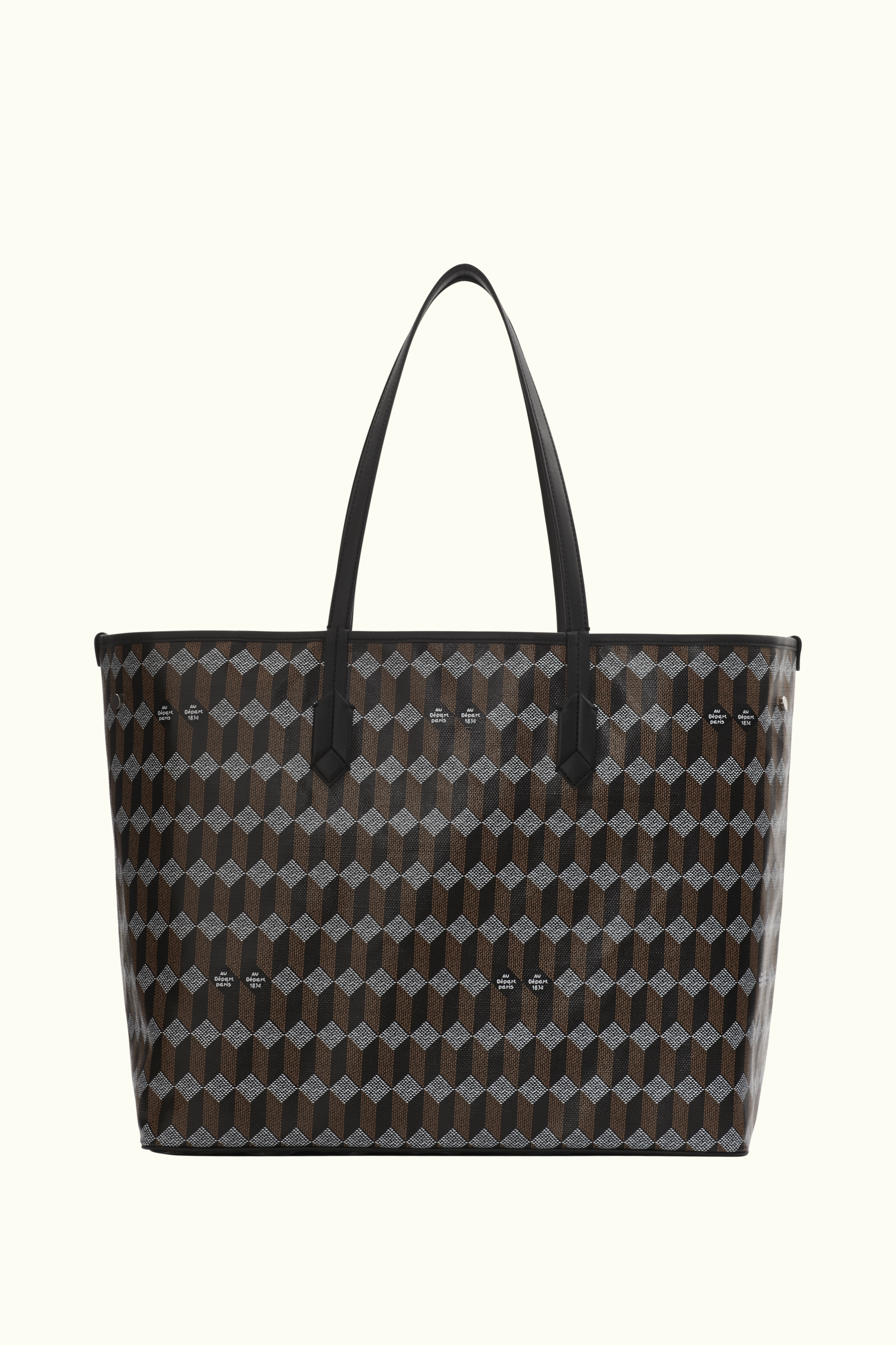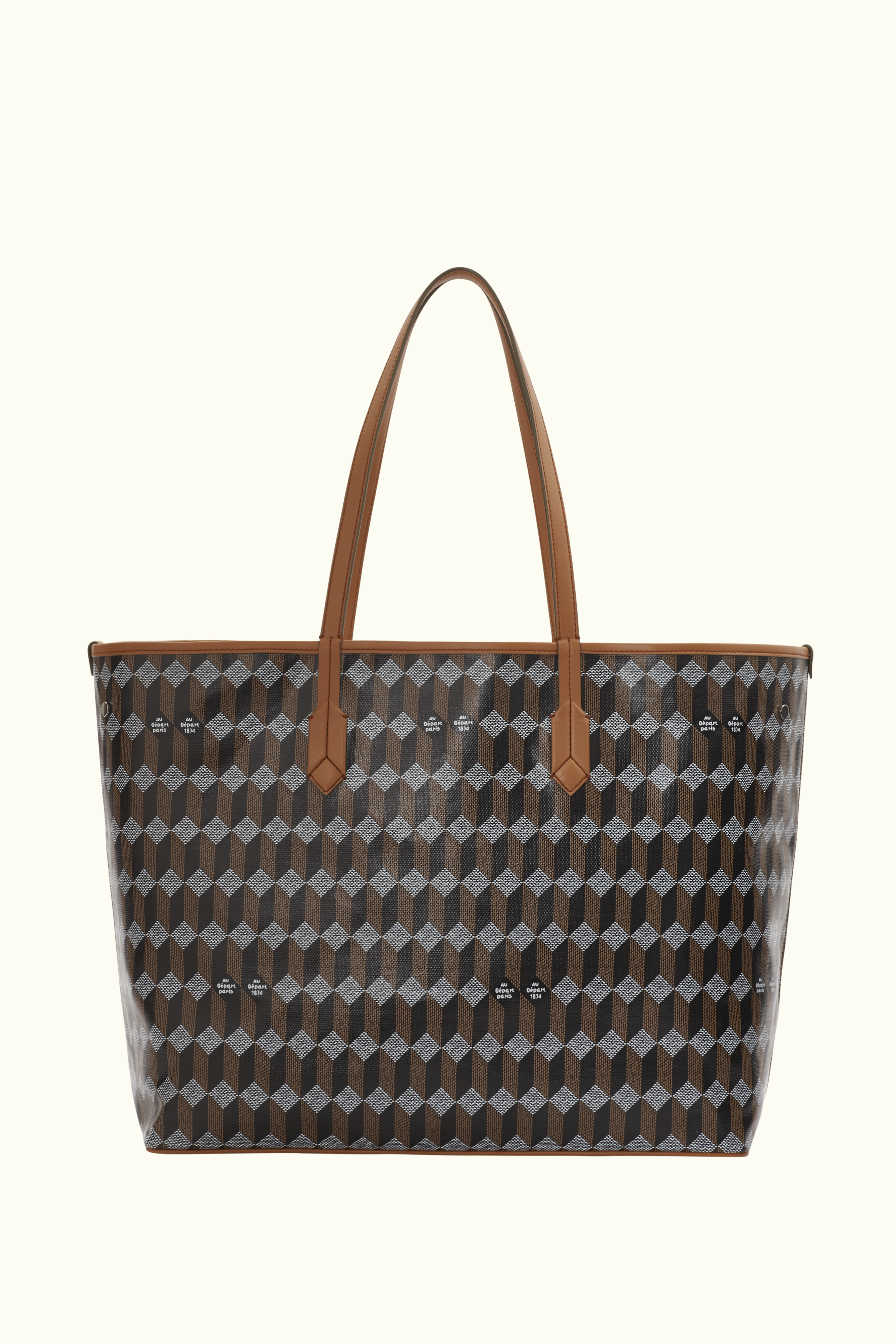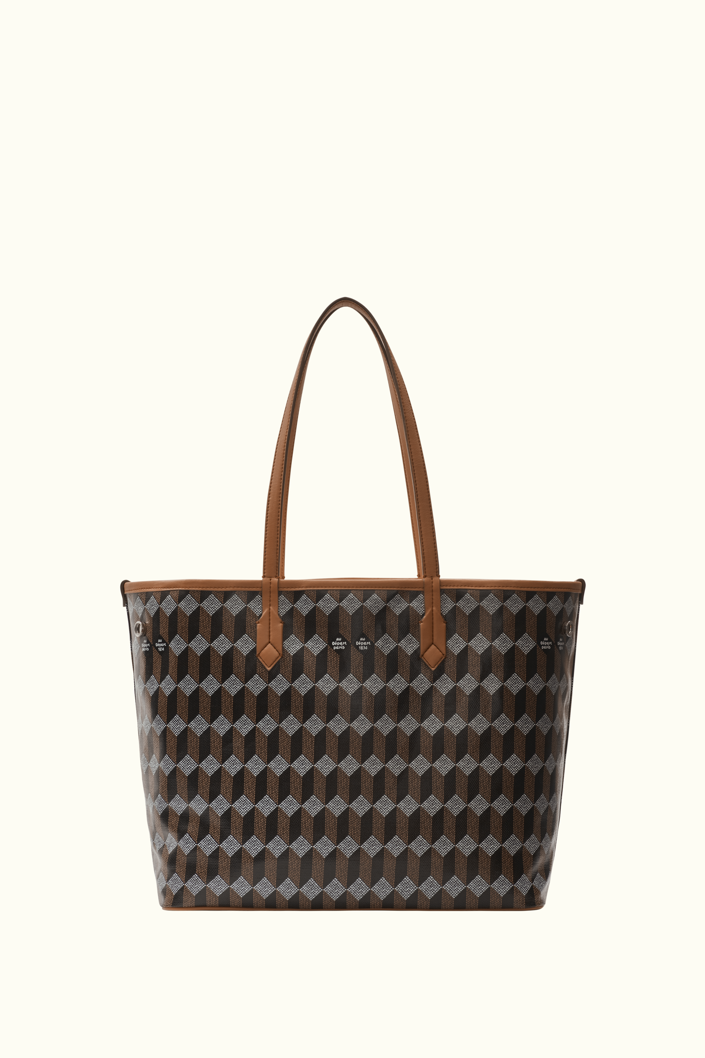 Le Tote, l'union harmonieuse de l'élégance et du lifestyle, mettant en valeur le monogramme héritage de la Maison disponible en 2 tailles. Un compagnon intemporel de jour comme de nuit.